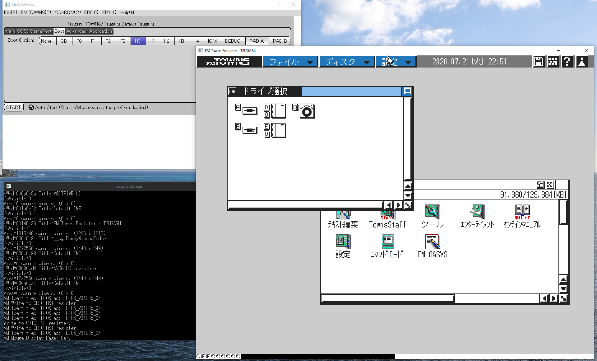念願の旧機種pc Fm Townsエミュが起動 N H 闇を彷徨い そして光を求めて